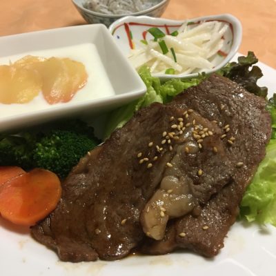 365日クッキング 9月8日の晩ごはん(おろしハンバーグ、豚ロースとズッキーニのソテー) おろしハンバーグ、人参とブロッコリーのグラッセ、紅大根のピクルス。【365日cooking】調理時間30分以内がサブコンセプトコロナ禍で家族...