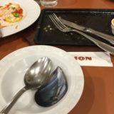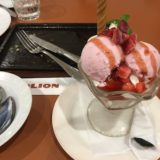 ザワークラウト、ムール貝のワイン蒸し、ペンネアラビアータ、ソーセージ盛り合わせ、いちごパフェ。