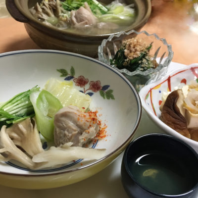 鶏の水炊き、温奴、ほうれん草のお浸し。