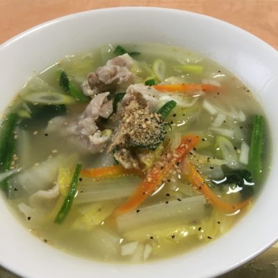 365日クッキング 9月6日のお昼ごはん(珍しくラーメン、珍しくカツ丼) 塩ラーメン。ネギ、キャベツ、豚肉、小松菜そして豆腐入り。【365日cooking】調理時間30分以内がサブコンセプトコロナ禍で家族そろって在...
