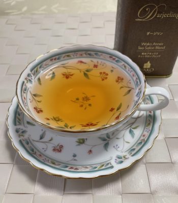 紅茶は和光ティーサロンブレンドのダージリン。丁寧に入れてティーサロンの味と香りを楽しむのである。