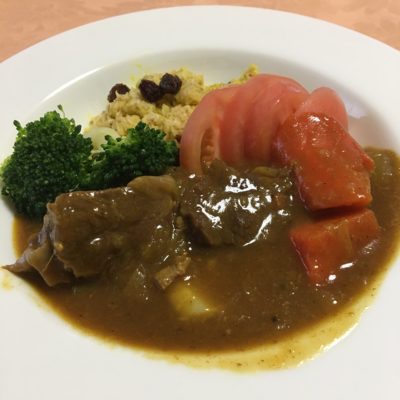 オニオングラタンスープ、レタスとピクルスのサラダ、ゆで玉子、ヨーグルトとレモンの甘煮。